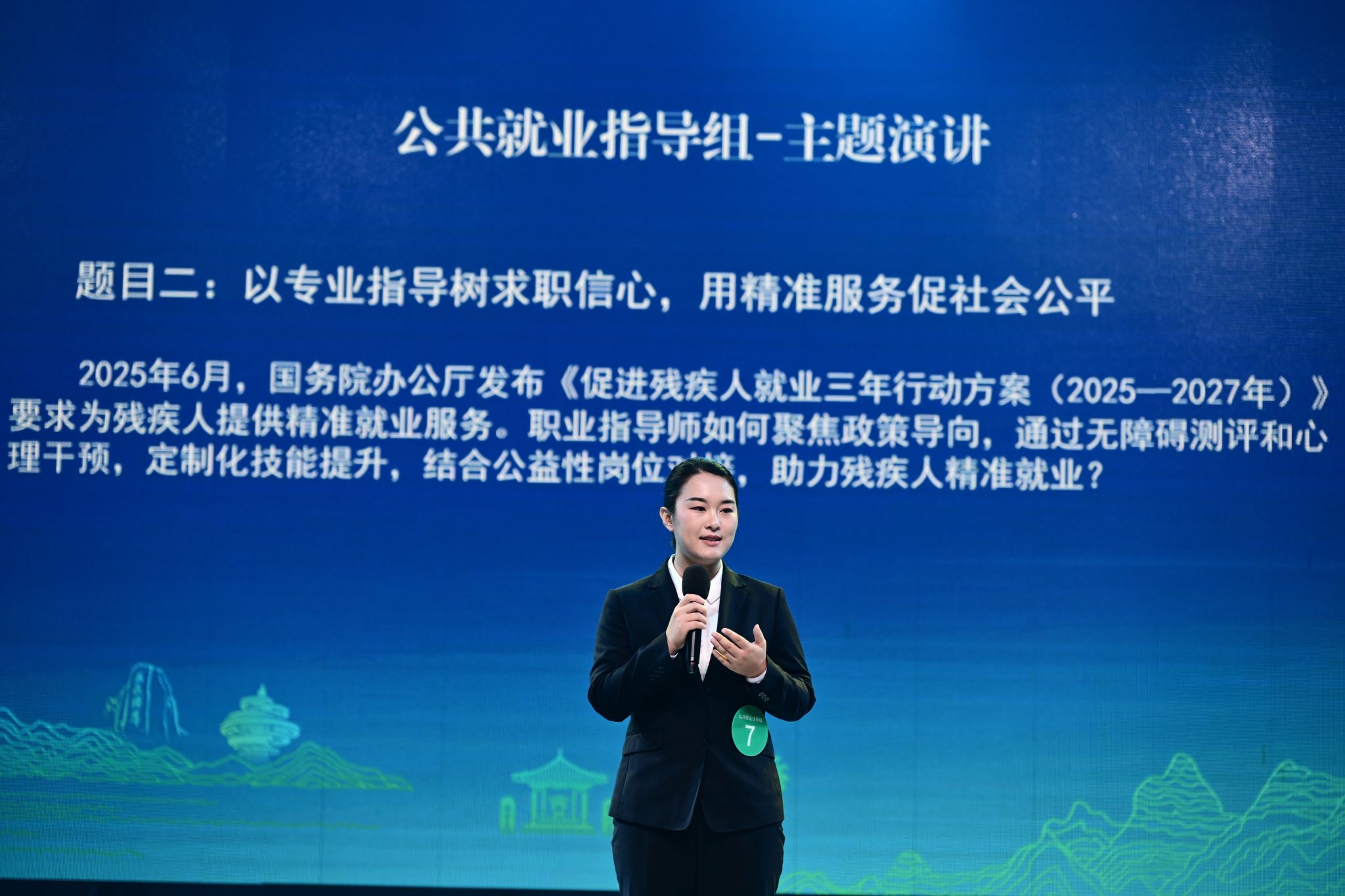 本届竞赛设置主题演讲、情景模拟、知识擂台三大环节,全面考察选手的职业指导理论素养、实操能力与应变水平。张新依以威海市公共就业组第一名的成绩脱颖而出,代表威海市出征省赛。在与全省顶尖选手的激烈角逐中,她沉着应对、逻辑缜密、从容自信、稳定发挥,充分展现了我校毕业生优秀的职业素养与综合实力。